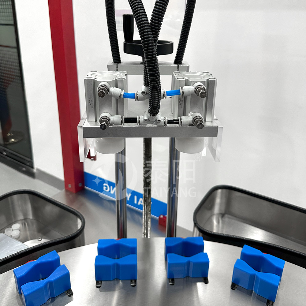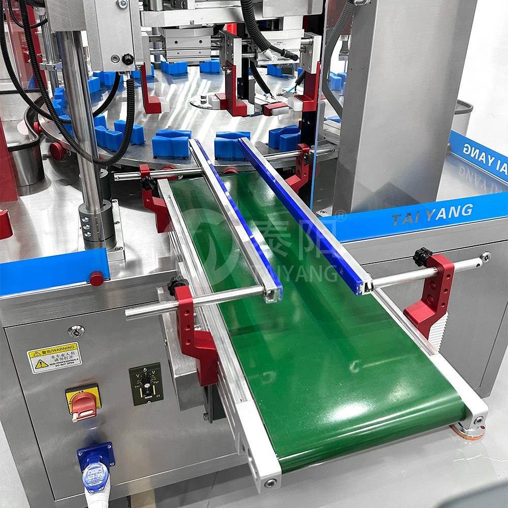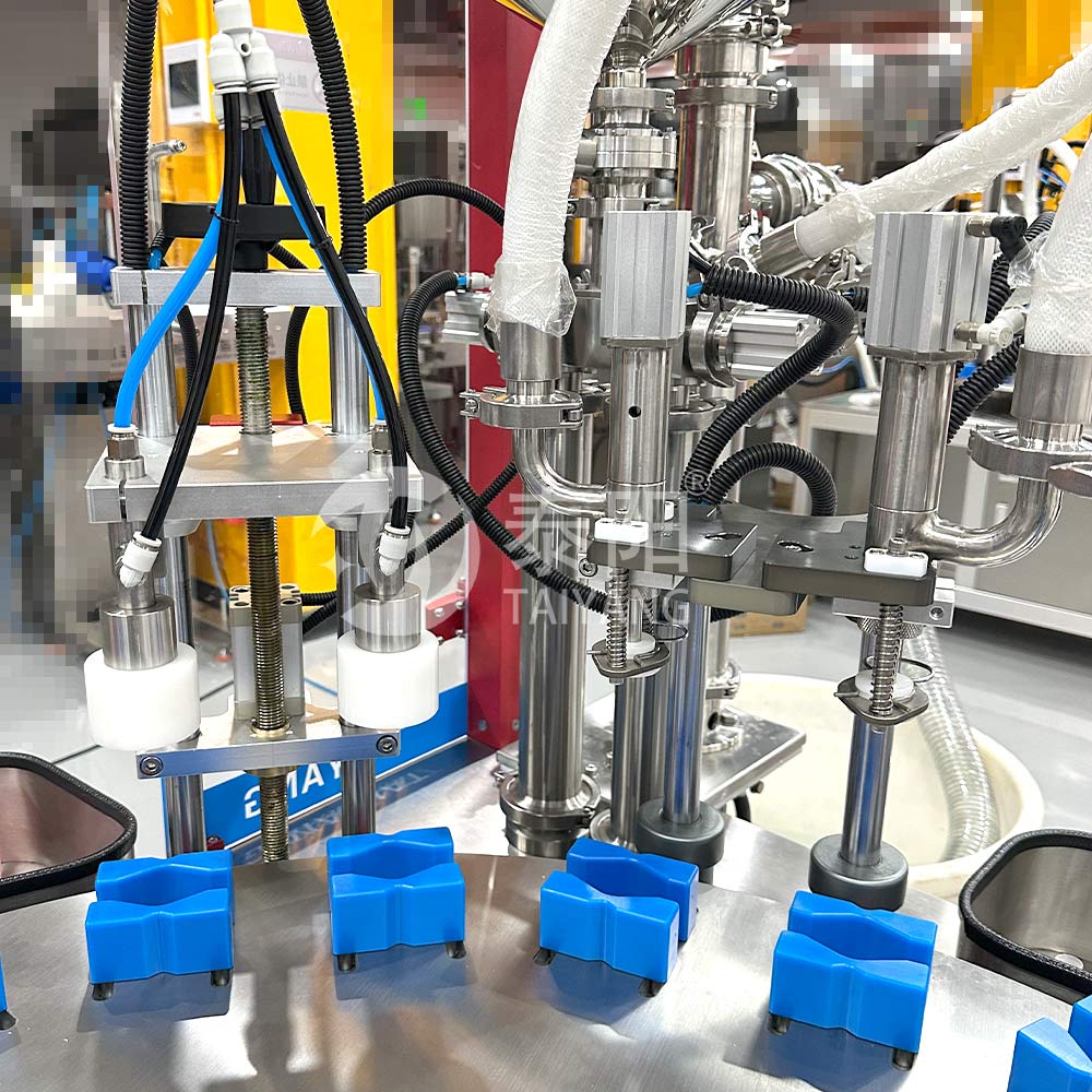 Tá struchtúr cobhsaí i struchtúr ag an meaisín líonta agus uasteorann lóis Taiyang seo. Ritheann an turntable go réidh agus go cruinn, ag cinntiú leanúnachas agus réidh na bpróiseas líonta agus uasteorannú. Tá an meaisín líonta agus uasteorann lóis Taiyang oiriúnach go háirithe oiriúnach chun buidéil bheaga-toirte, buidéil de chruthanna speisialta, réitigh uiscí, lóiseanna, uachtair agus olaí a líonadh. Is féidir leis dul in oiriúint go foirfe do réitigh agus uachtair uiscí an -sreabhach le slaodacht áirithe. Le linn an phróisis líonta, is féidir an ráta sreafa a rialú go cruinn chun a chinntiú gur féidir gach pacáiste toirte beag a líonadh go cruinn, ag seachaint dramhaíola agus líonadh neamhleor. Is trealamh idéalach é an líonadh agus an t-uasteorannú lóis Taiyang Lotion Meaisín chun táirgeadh éifeachtach agus cruinn uisce, lóiseanna, uachtair agus táirgí eile a tháirgeadh.