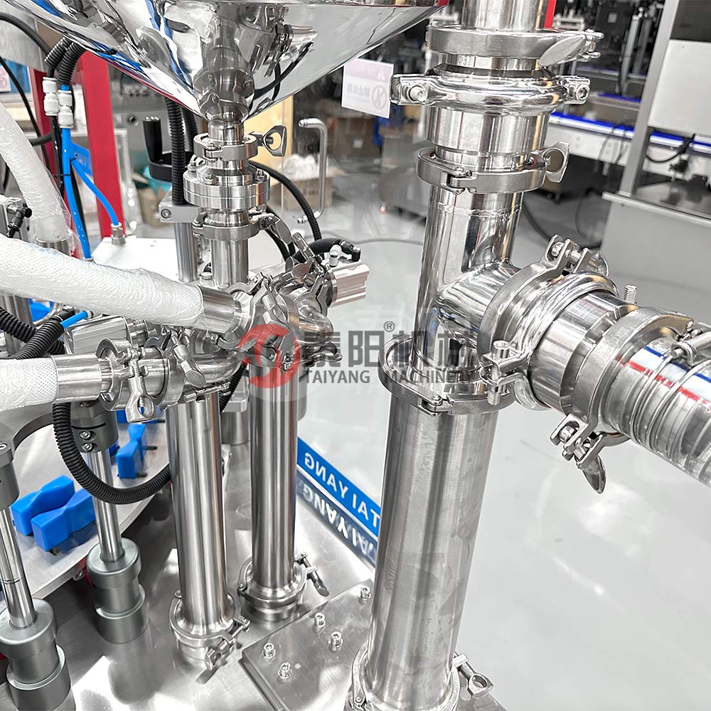 Tá fráma meaisín líonta agus uasteorannú uachtaráin taiyang taiyang deartha le próifílí alúmanaim ardcháilíochta agus álainn, 304 cruach dhosmálta le haghaidh pláta séalaithe, 316 cruach dhosmálta chun leacht a líonadh, agus is iad na comhpháirteanna niúmatacha go léir ná Taico-inch. Rialaitheoir, Mótar GPG, agus lascthrealamh do Schneider.